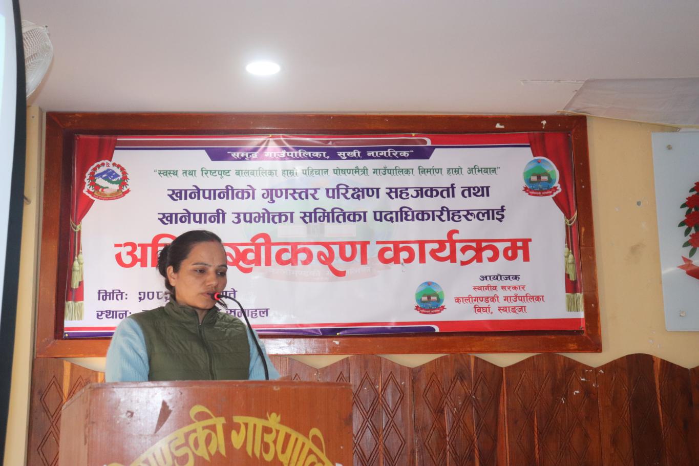 खानेपानीको गुणस्तर परीक्षण सम्बन्धी अभिमुखीकरण कार्यक्रम : पोषणमैत्री गाउँपालिका अभियान
