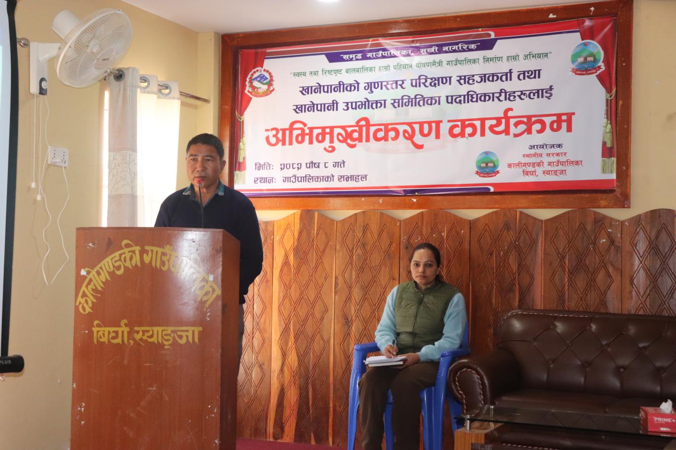 गाउँपालिका अध्यक्ष श्री खिम बहादुर थापा ज्यूको अध्यक्षतामा सञ्चालित उक्त कार्यक्रममा खानेपानी उपभोक्ता समितिहरूलाई सुरक्षित, स्वच्छ तथा गुणस्तरीय खानेपानीको महत्वबारे जानकारी गराइएको थियो। विशेषगरी, कालीगण्डकी गाउँपालिकाले आफ्नै लगानीमा खानेपानीको गुणस्तर परीक्षणका लागि प्रयोगशाला (ल्याब) स्थापना गरिसकेको तथ्यलाई कार्यक्रममा जोड दिँदै प्रस्तुत गरिएको छ, जसले स्थानीयस्तरमै नियमित र विश्वसनीय परीक्षण सम्भव बनाएको छ।