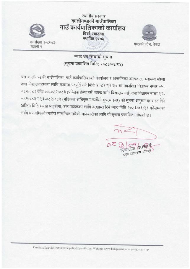 म्याद थप सम्बन्धी सूचना